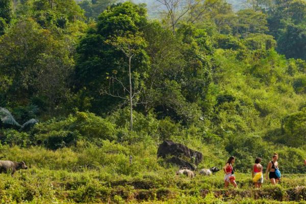 A 30-minute drive brings you to the starting point of Tham Phay Cave. Begin a challenging hike with a steep uphill trail through dense forest, rocky terrain, and open valleys. Your guide and safety team assist you through tricky sections and route finding.