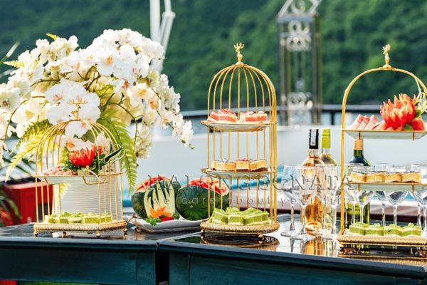 Arrive at Tuan Chau Harbor (Pier No. 21) around 12:00 – 12:15. Relax in the waiting lounge before boarding the 5-star Ha Long Sonata Cruise, where you’ll be greeted with a refreshing welcome drink and cool towel.