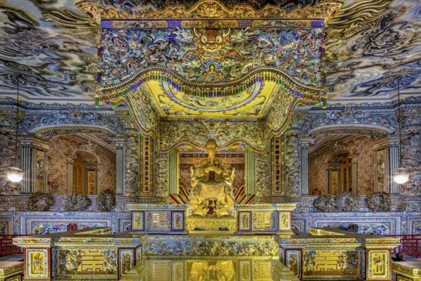 Khai Dinh Tomb – a striking blend of Eastern tradition and Western architectural elements, decorated with intricate mosaics and elaborate details.