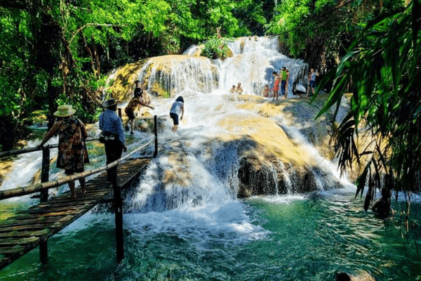 After lunch, enjoy swimming, photography, and relaxation beside the waterfall surrounded by lush greenery.